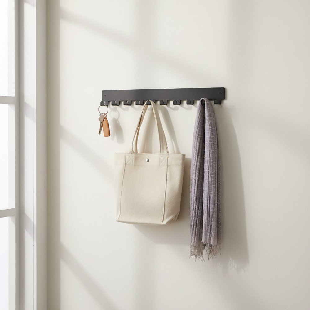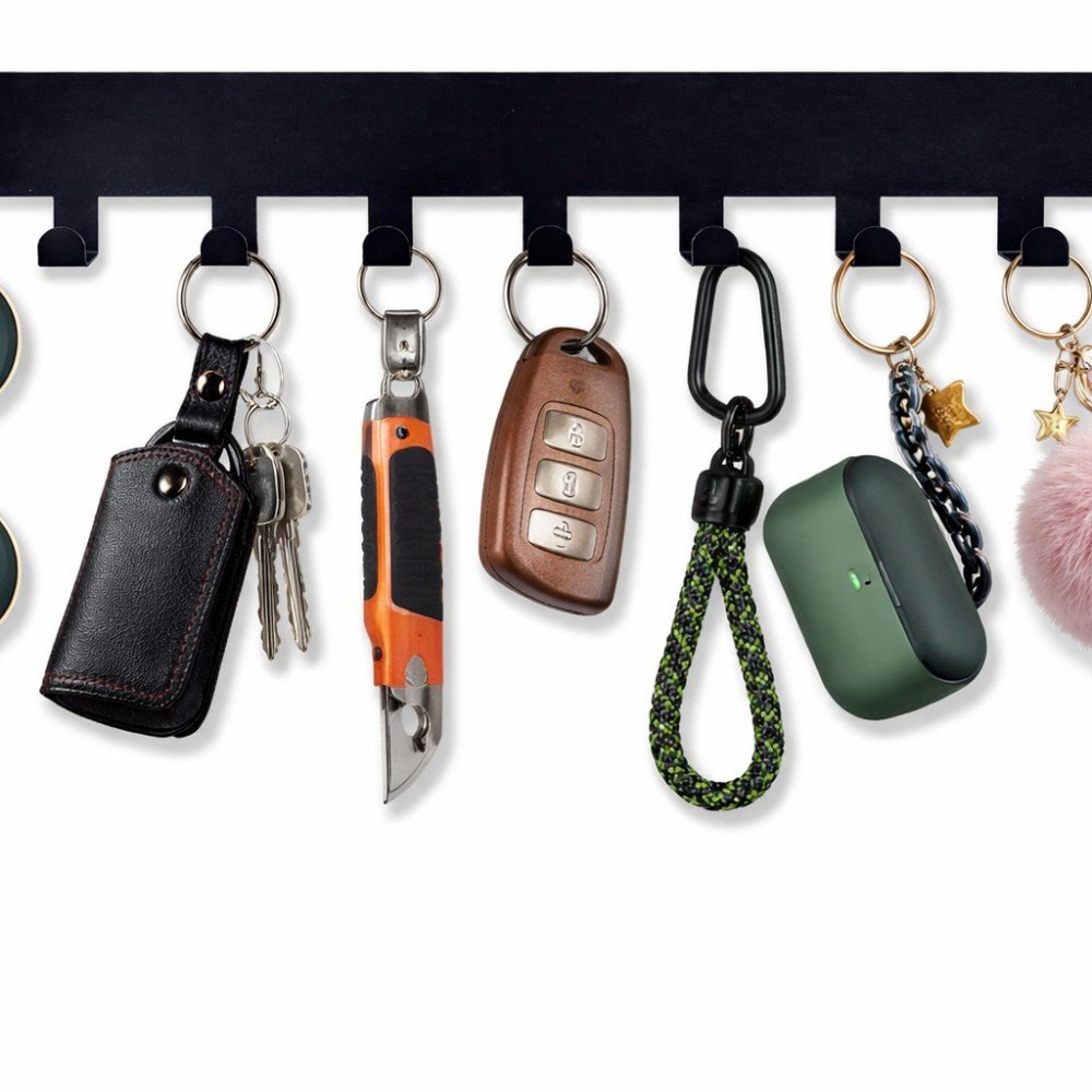 - 7 metāla āķi: piemēroti atslēgu, piekaramo atslēgu un citu sīkumu piekāršanai.